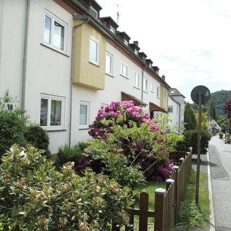 Die Häuser Im Gefälle 12-18 und 24 liegen ebenfalls in einer schönen ruhigen Seitenstraße am Ortenberg. Die Häuser 12 und 18 bestehen aus jeweils 3 Parteien, wobei die unten liegenden Wohnungen eine schöne Terrasse, mit direktem Zugang, zum Garten besitzen. Die dortigen Wohnungen haben zwischen 2 und 4 Zimmern mit ca. 40m² bis 80m². Die im Jahre 1930 erbauten Häuser Nummer 14 und 16 sind schöne ruhige Reihenhäuser mit ca. 120m². Das Haus Nummer 24 liegt eine Straße weiter und wurde im Jahre 1985 neu erbaut. Die dortigen Wohnungen verfügen über einen schönen Balkon/ Loggia und einen schönen Garten.